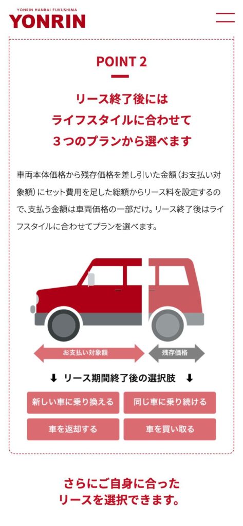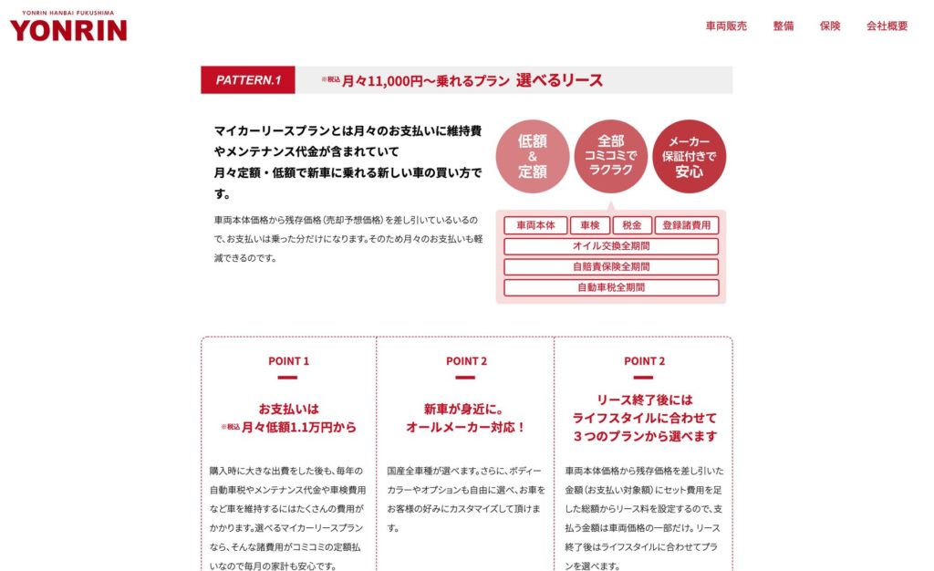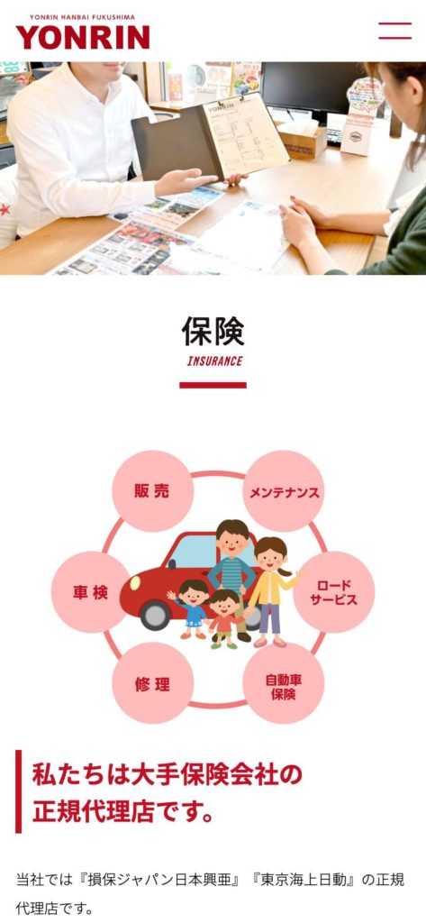 YONRINWEB https://yonrinhanbai.com 福島市のYONRIN様のWebサイトコーディングを担当しました。2020年10月制作Client / (株)四輪販売福島 Direction / (株)インパック Design / (株)インパック Coding / ごしま